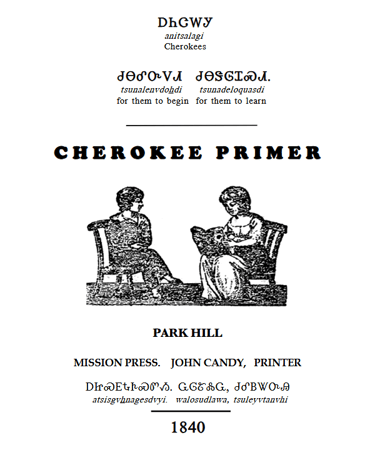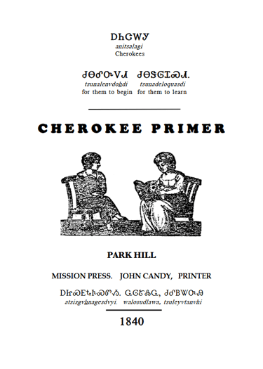 The Cherokee Primer (1840 Edition) has been translated for the first time by Ed Fields, Mary Rae, Patrick Del Percio, and Eva Garroutte. The translators have included all twenty lesson stories which were used to teach Cherokee children to read syllabary. The translation is availble as a 5 x 7 pdf at no cost. See below for a print-friendly version.